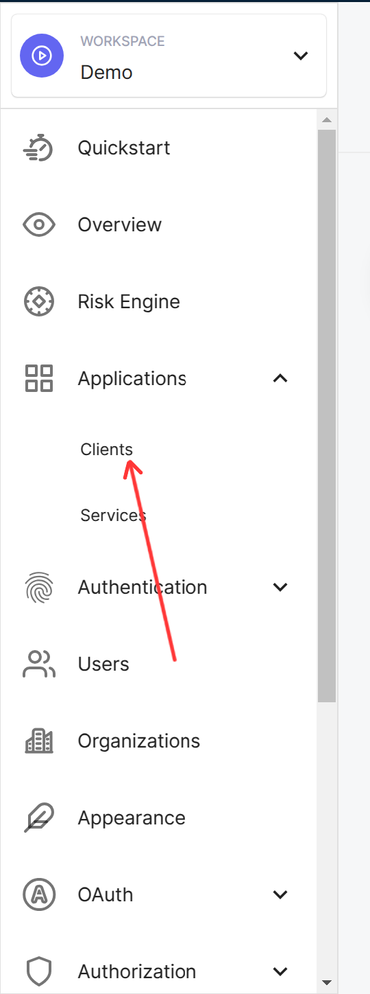- Click on the Applications option from the dropdown menu, and select Clients.