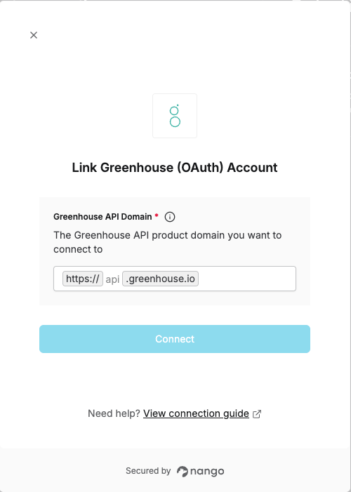 To authenticate with Greenhouse (OAuth), you need:- Greenhouse API Domain - This is the domain to the Greenhouse API product you would wish to connect to.