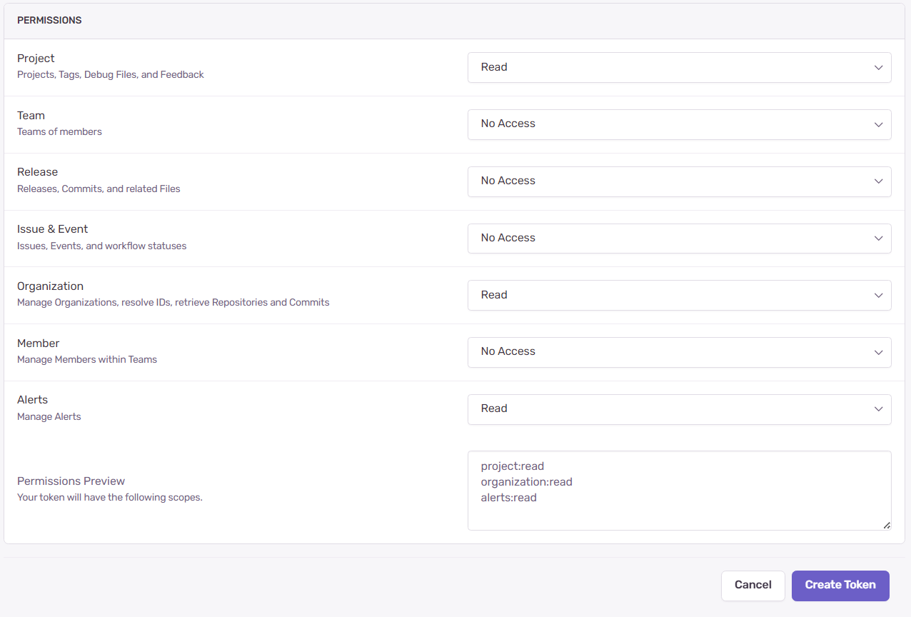 - Auth Token - A key that grants Nango permission to interact with Sentry’s APIs resources and services.