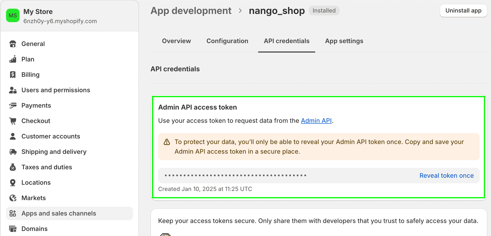 - API Access Token - The API access token generated after installing an app in your Shopify store.