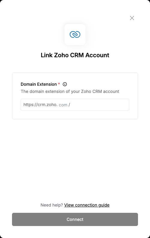 To authenticate with Zoho CRM, you need:- Domain Extension - This extension indicates the data center where your account is hosted.