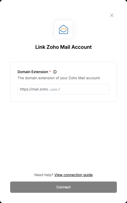 To authenticate with Zoho Mail, you need:- Domain Extension - This extension indicates the data center where your account is hosted.